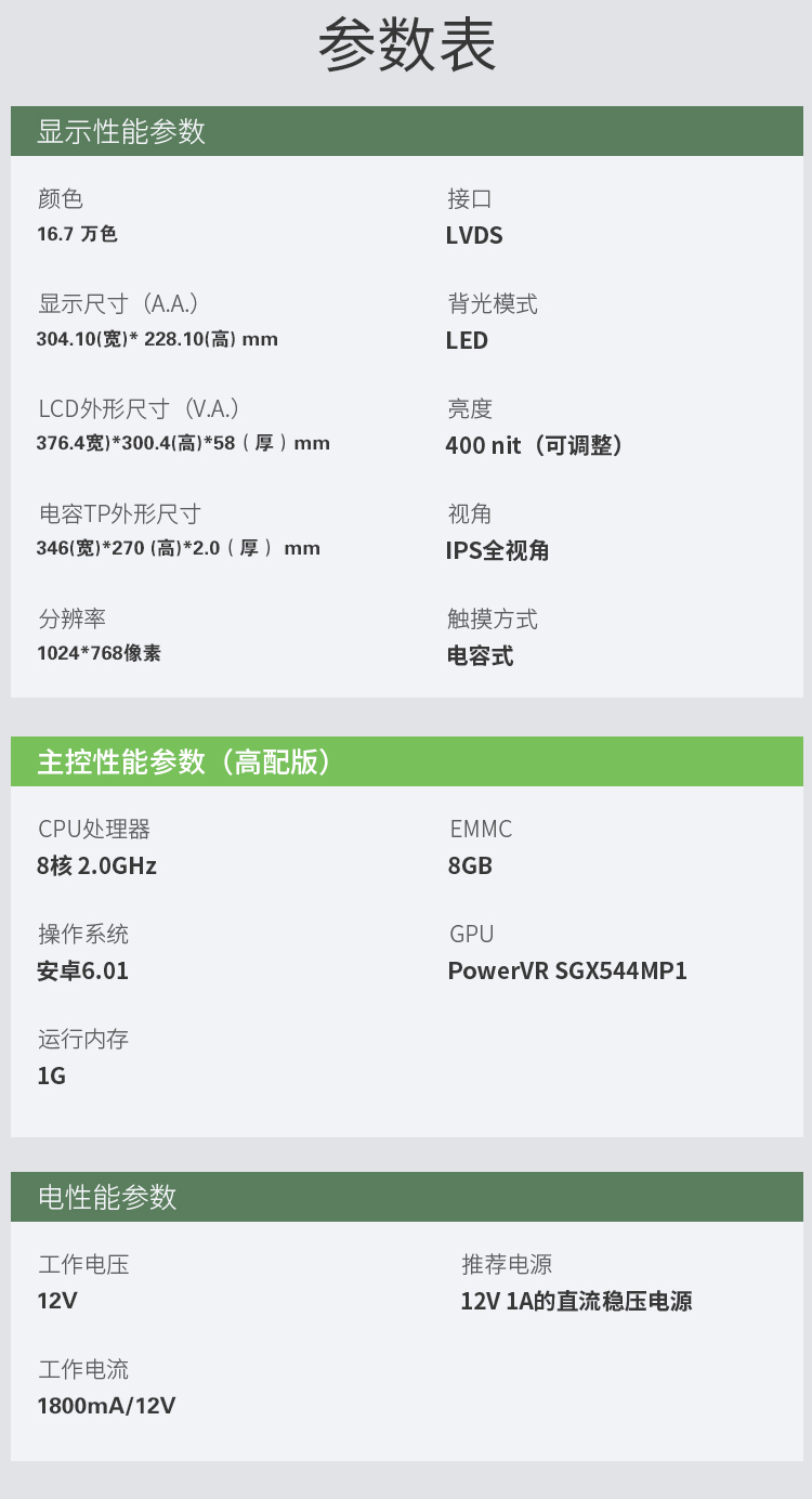- 参数规格表