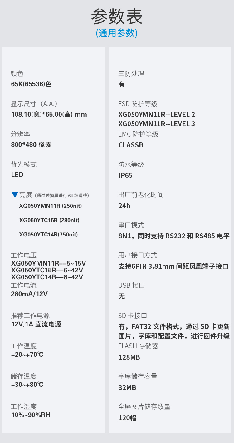 - 参数规格表