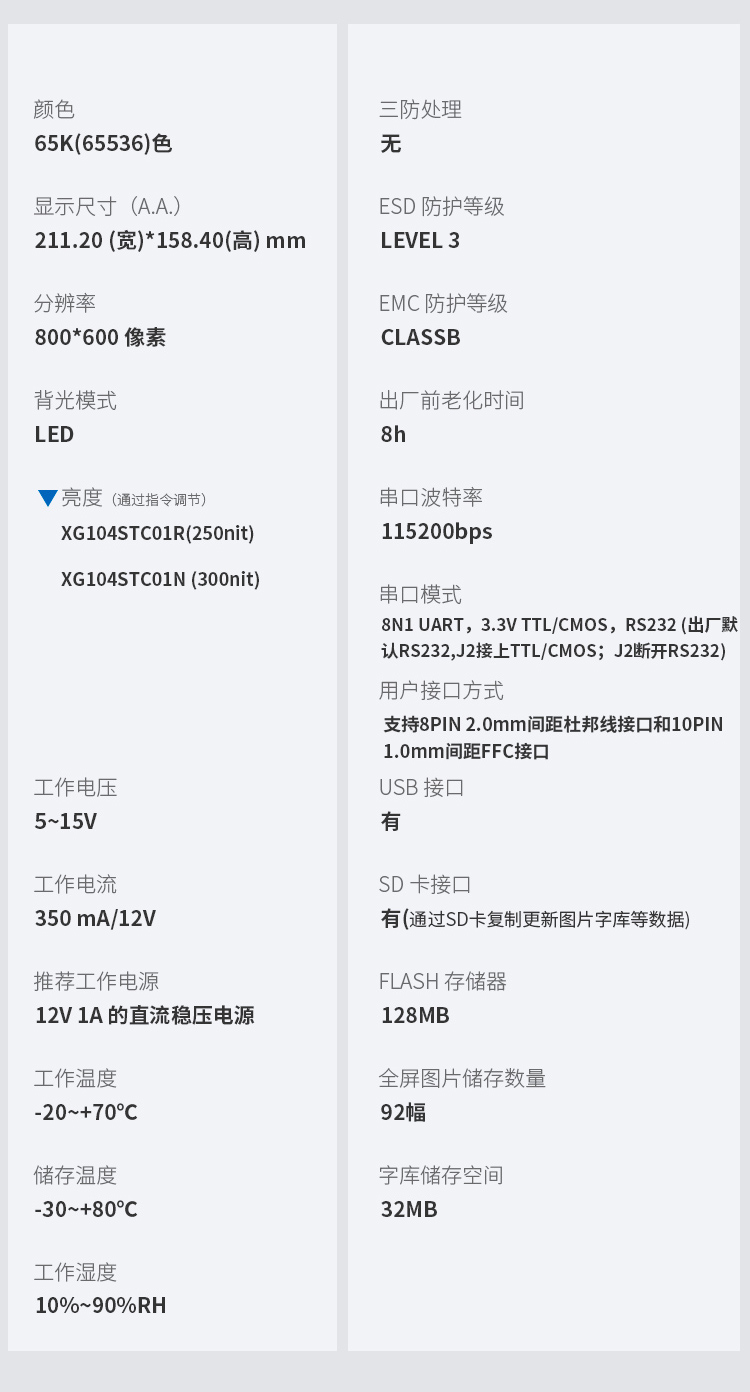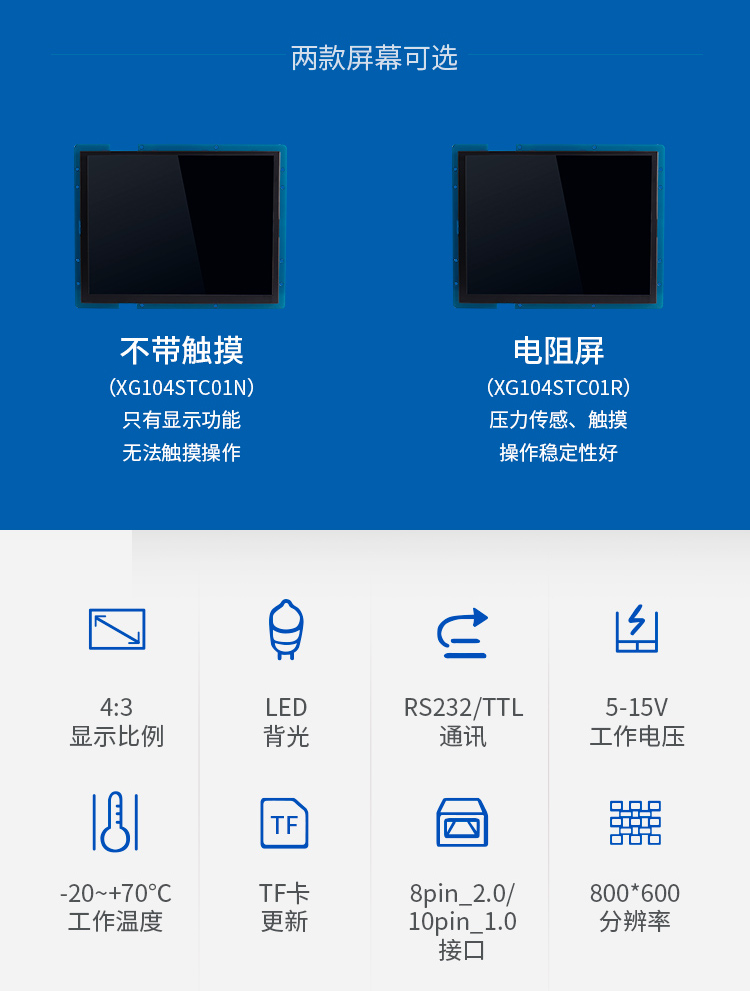 特点描述:XG104系列产品搭载j9国际备用SGUS(超级图形应用软件)系统,是基于j9国际备用串口屏硬件平台研发的拥有自主知识产权的智能图形显示系统。用户可通过SGUS串口智能显示终端轻松实现触控功能, 如数据文本录入、按键值返回、增量调节、弹出菜单等;也可以快速实现显示功能,如表盘时钟、图标变量、艺术字、曲线显示、列表显示、文本显示等。