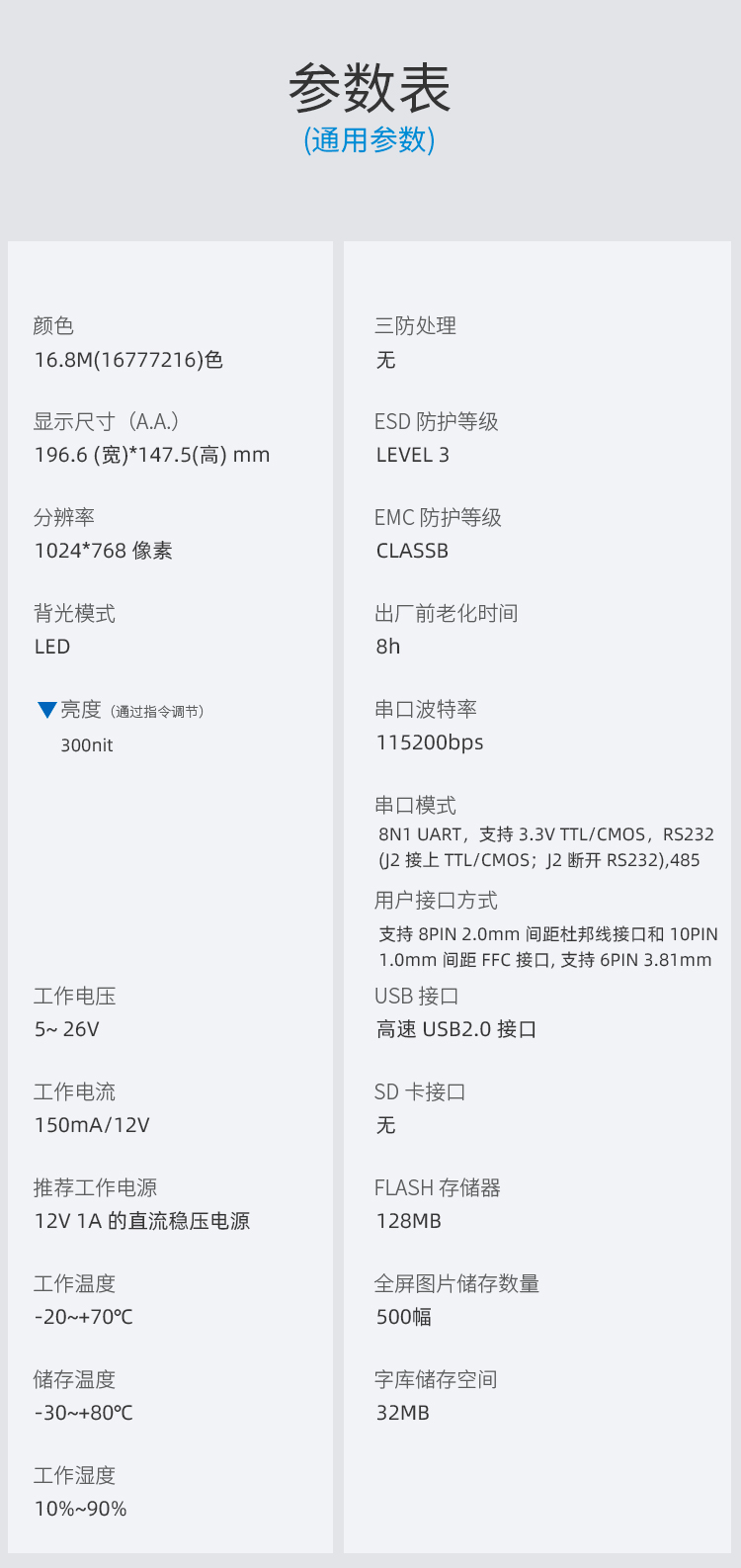 - 参数规格表