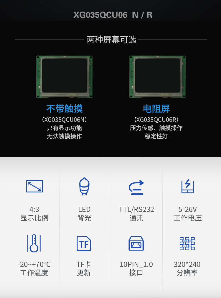 特点描述:XG035系列产品搭载j9国际备用SGUS(超级图形应用软件)系统,是基于j9国际备用串口屏硬件平台研发的拥有自主知识产权的智能图形显示系统。用户可通过SGUS串口智能显示终端轻松实现触控功能,如数据文本录入、按键值返回、增量调节、弹出菜单等;也可以快速实现显示功能,如表盘时钟、图标变量、艺术字、曲线显示、列表显示、文本显示等。