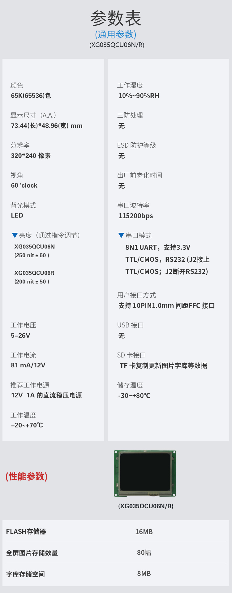 - 参数规格表