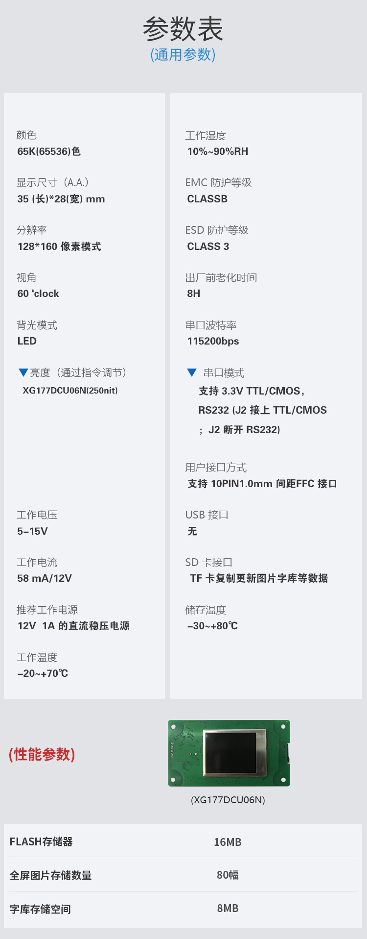 - 参数规格表