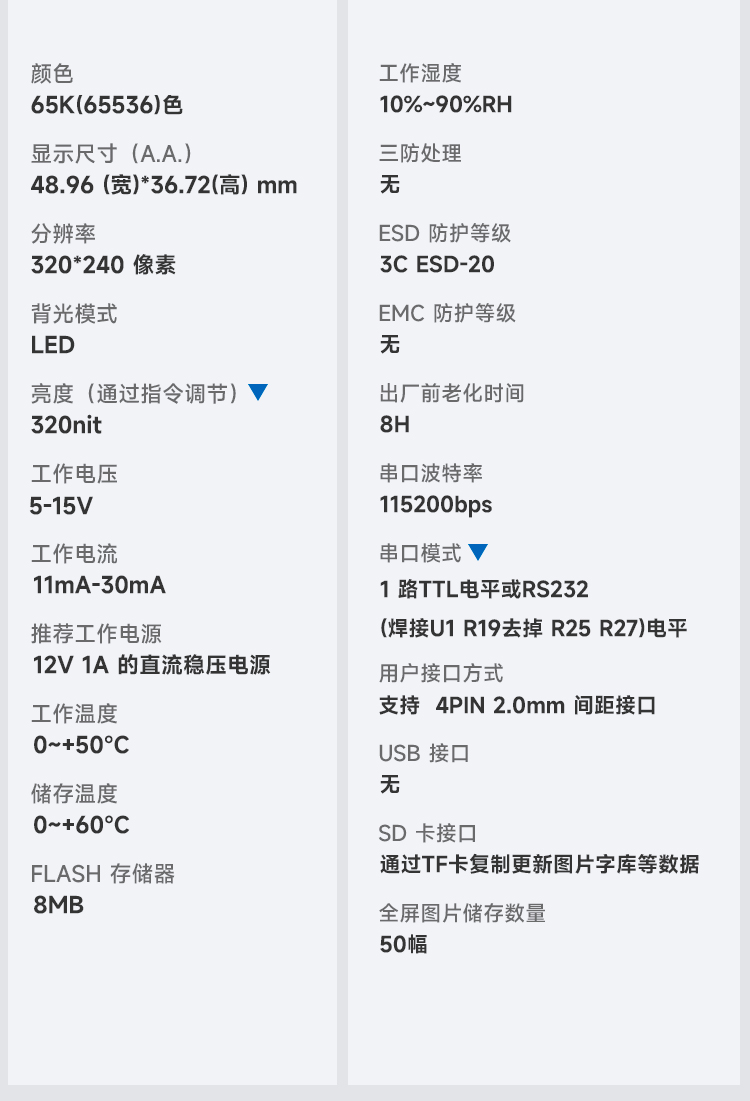 - 参数规格表