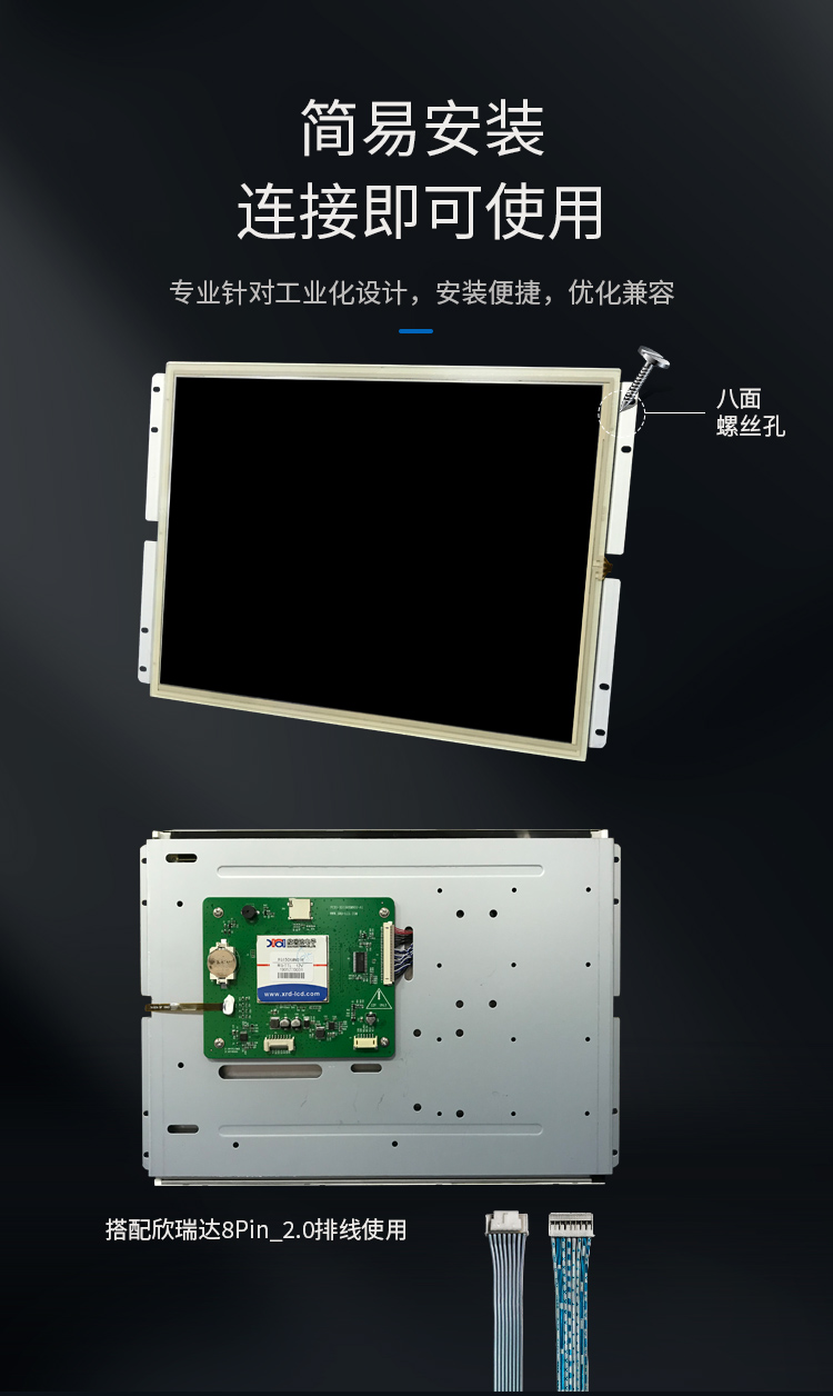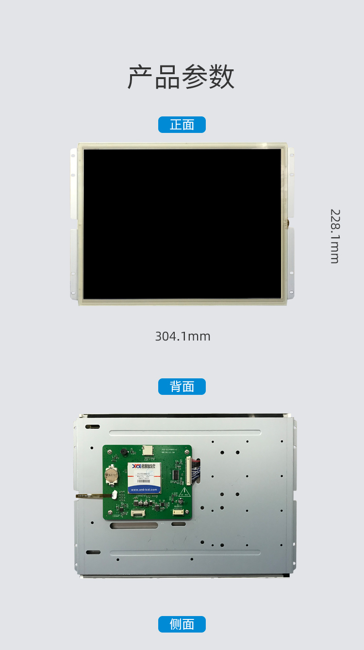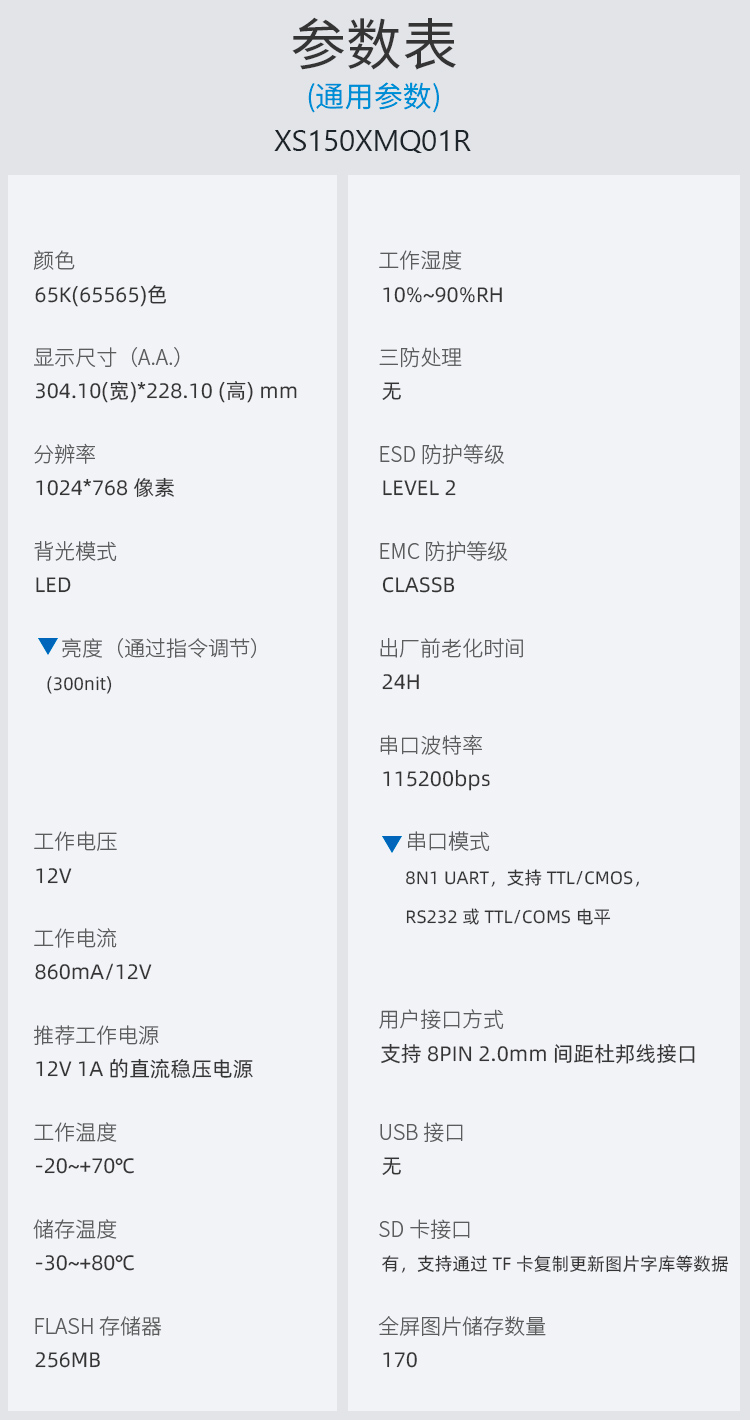 特点描述:XS150XMQ01R系列产品是一款基于ARM架构的嵌入式工业控制系统,以工业级ARM为核心,扩展15英寸LCD、触摸屏。定义了一套用于LCD显示的指令集并设计了相关解释程序,只需通过串口发送相关指令,就可以实现各种图形及文字显示功能。