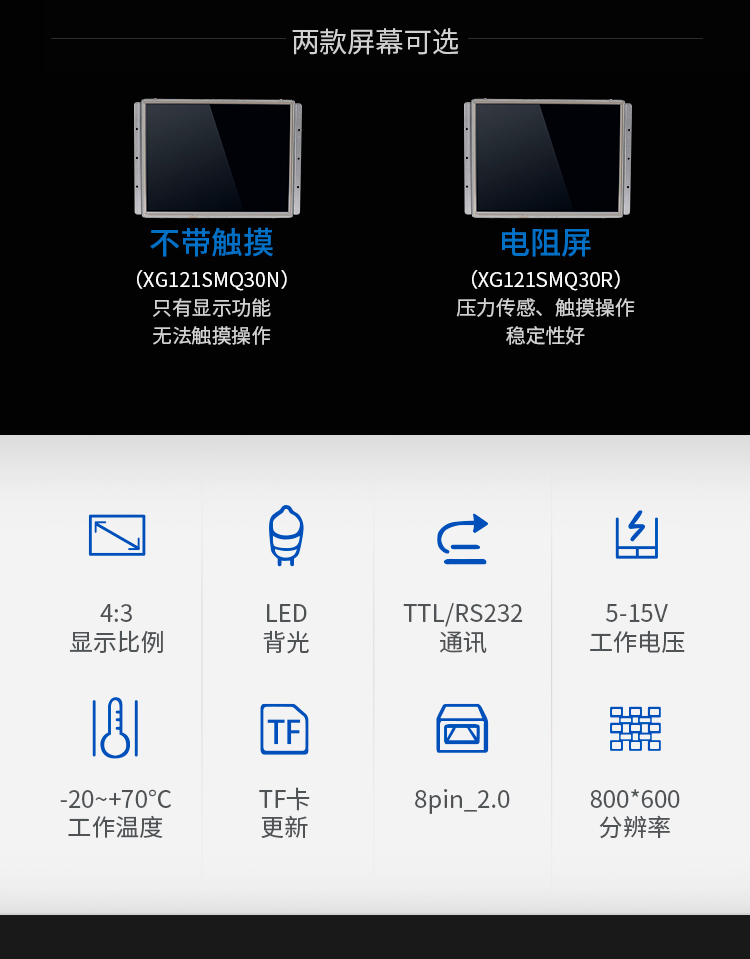 特点描述:XG121SMQ30系列产品搭载j9国际备用SGUS(超级图形应用软件)系统,是基于j9国际备用串口屏硬件平台研发的拥有自主知识产权的智能图形显示系统。用户可通过SGUS串口智能显示终端轻松实现触控功能, 如数据文本录入、按键值返回、增量调节、弹出菜单等;也可以快速实现显示功能,如表盘时钟、图标变量、艺术字、曲线显示、列表显示、文本显示等。