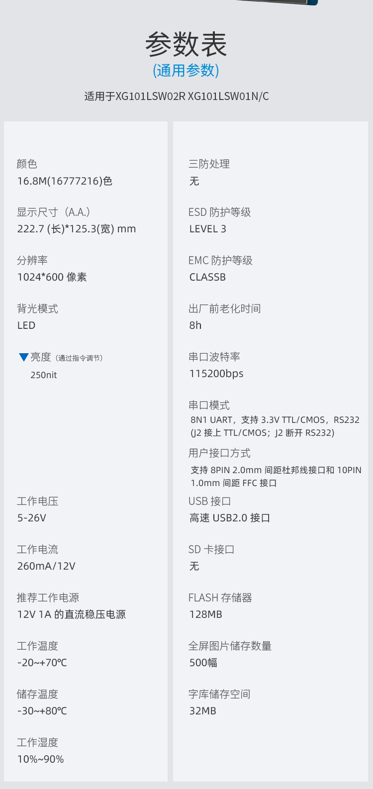 特点描述:XG101LV系列产品搭载j9国际备用SGUS(超级图形应用软件)系统,是基于j9国际备用串口屏硬件平台研发的拥有自主知识产权的智能图形显示系统。用户可通过SGUS串口智能显示终端轻松实现触控功能, 如数据文本录入、按键值返回、增量调节、弹出菜单等;也可以快速实现显示功能,如表盘时钟、图标变量、艺术字、曲线显示、列表显示、文本显示等。