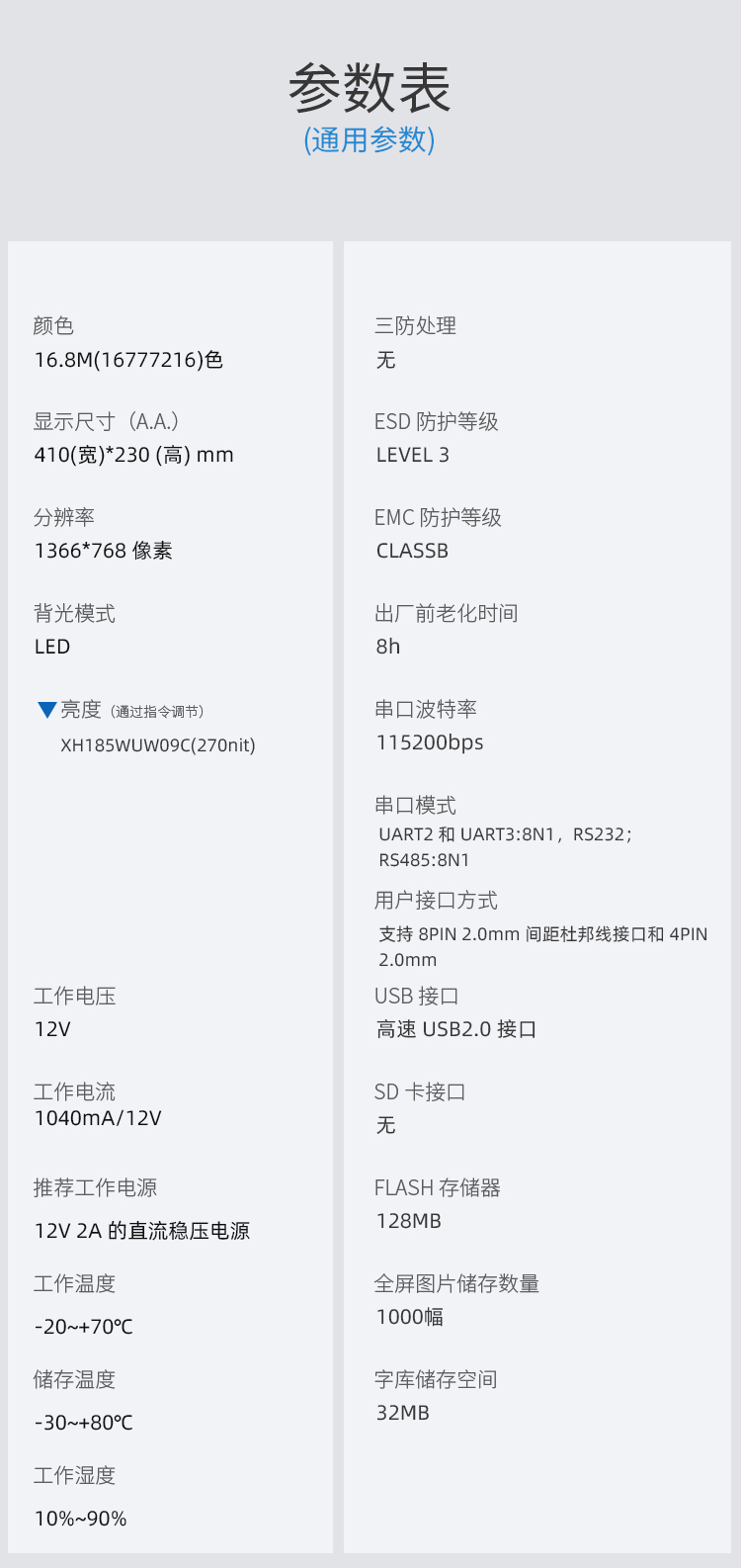 特点描述:XH185WUW09C 系列产品搭载j9国际备用 SGUS(超级图形应用软件)系统,是基于j9国际备用串口屏硬件平台研发的拥有自主知识产权的智能图形显示系统。用户可通过 SGUS 串口智能显示终端轻松实现触控功能, 如数据文本录入、按键值返回、增量调节、弹出菜单等;也可以快速实现显示功能,如表盘时钟、图标变量、艺术字、曲线显示、列表显示、文本显示等。