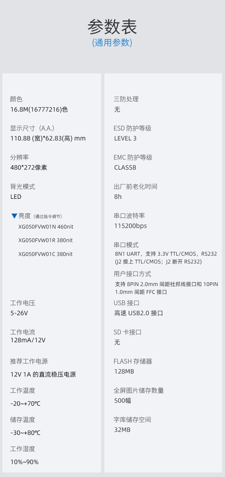 特点描述:XG050系列产品搭载j9国际备用 SGUS(超级图形应用软件)系统,是基于j9国际备用串口屏硬件平台研发的拥有自主知识产权的智能图形显示系统。用户可通过 SGUS 串口智能显示终端轻松实现触控功能, 如数据文本录入、按键值返回、增量调节、弹出菜单等;也可以快速实现显示功能,如表盘时钟、图标变量、艺术字、曲线显示、列表显示、文本显示等。
